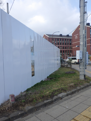 仙台医療センターの新築工事現場脇の旧ベンチの周り