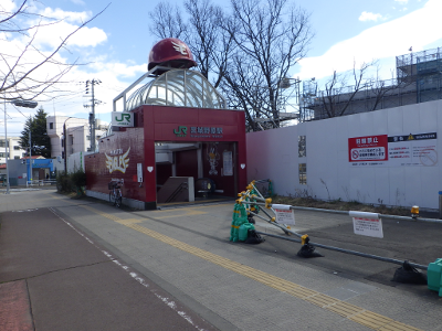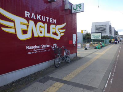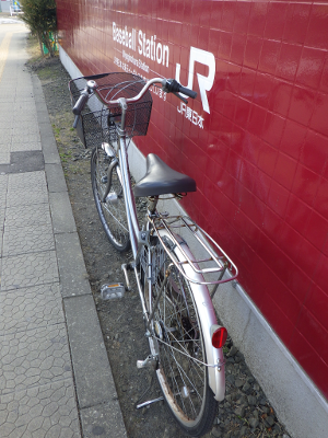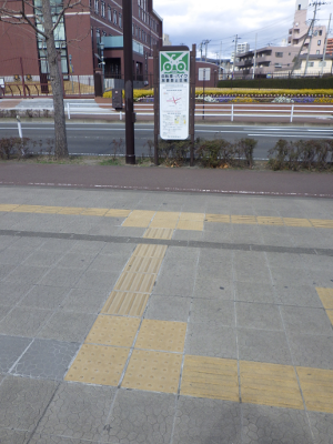 この日,宮城野原駅の球場側の駅舎前に,1台の自転車が違法駐輪されていた。この自転車は,違法駐輪常連のものだ。毎度毎度の繰り返しになるが,この位置に1台だけ違法駐輪されている分には,点字ブロックの利用の支障にはならないが,真似をする自転車が他に出てくると,確実に点字ブロック利用の邪魔になる。管理者には,そうなる前に早急の対応をお願いしたい。