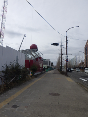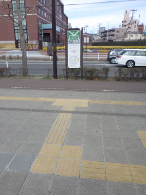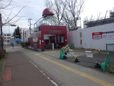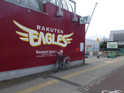 この日も,宮城野原駅の球場側の駅舎前に,1台の自転車が違法駐輪されていた。この自転車は,前日も同じ場所に駐輪していた違法駐輪常連のものだ。毎度毎度の繰り返しになるが,この位置に1台だけ違法駐輪されている分には,点字ブロックの利用の支障にはならないが,真似をする自転車が他に出てくると,確実に点字ブロック利用の邪魔になる。管理者には,そうなる前に早急の対応をお願いしたい。