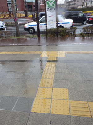 に駐輪していた違法駐輪常連のものだ。毎度毎度の繰り返しになるが,この位置に1台だけ違法駐輪されている分には,点字ブロックの利用の支障にはならないが,真似をする自転車が他に出てくると,確実に点字ブロック利用の邪魔になる。管理者には,そうなる前に早急の対応をお願いしたい。