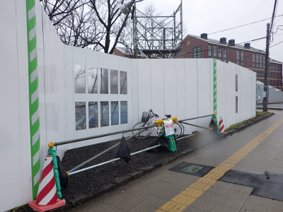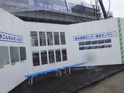 仙台医療センターの新築工事現場脇の旧ベンチの周り