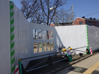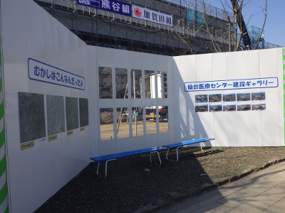 仙台医療センターの新築工事現場脇の旧ベンチの周り