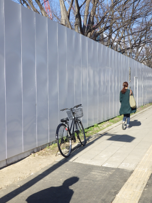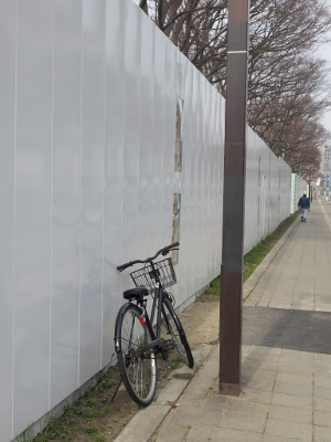 仙台医療センターの新築工事現場脇の旧ベンチの周り