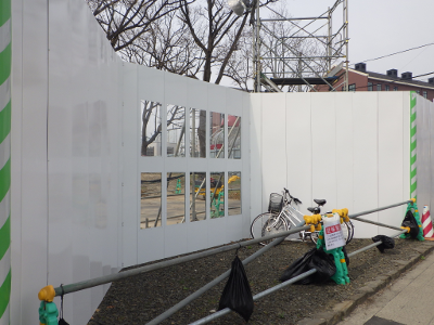 ,現仙台医療センターと新築工事現場が挟む通りの駅から遠い側の工事現場前に