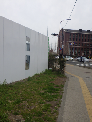 しかし,現仙台医療センターと新築工事現場が挟む通りの駅から遠い側の工事現場前に
