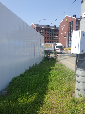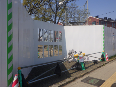 仙台医療センターの新築工事現場脇の旧ベンチの周り