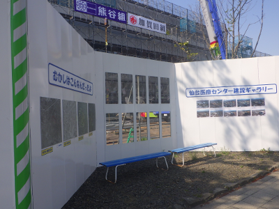 現仙台医療センターと新築工事現場が挟む通りの駅から遠い側の工事現場前