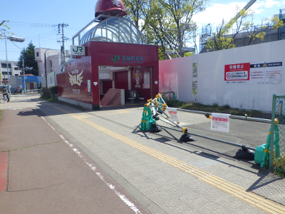 なお,現仙台医療センターと新築工事現場が挟む通りの駅から遠い側の工事現場前には,違法駐輪された自転車はなかった。