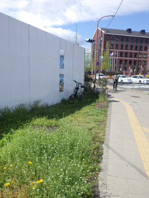 仙台医療センターの新築工事現場脇の旧ベンチの周り