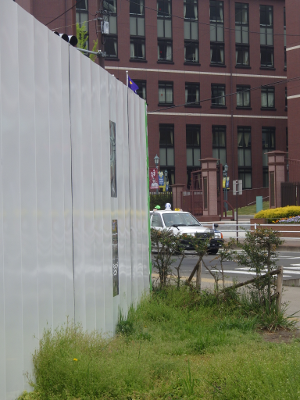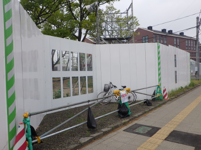 仙台医療センターの新築工事現場脇の旧ベンチの周り