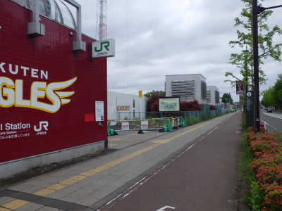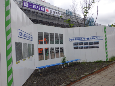 仙台医療センターの新築工事現場脇の旧ベンチの周り
