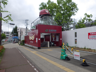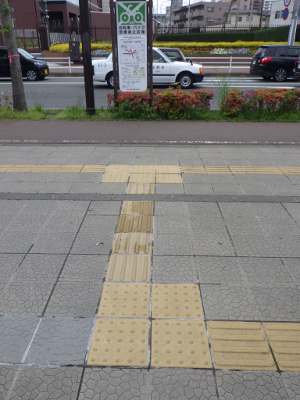 曇天のこの日,宮城野原駅前に違法駐輪された自転車はなかった。また,点字ブロックの利用を妨げるような障害物はなかった。