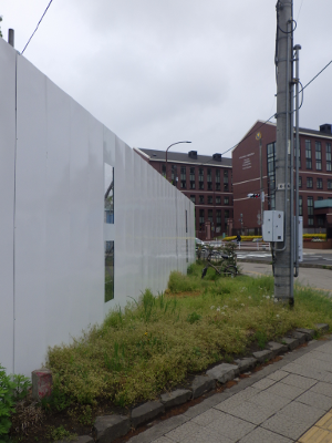 仙台医療センターの新築工事現場脇の旧ベンチの周り