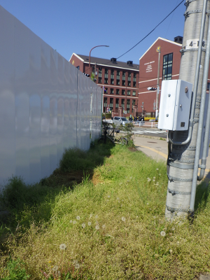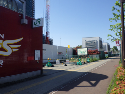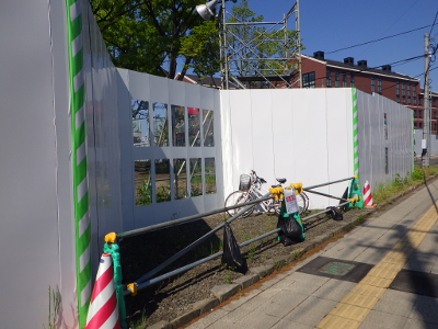 仙台医療センターの新築工事現場脇の旧ベンチの周り