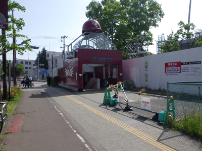 前日に引き続きこの日も,宮城野原駅前には1台の自転車が違法駐輪されていた。この自転車は,前々日から同じ場所に放置されていた自転車だ。繰り返しになるが,この位置の1台だけの違法駐輪であれば,視覚障害者の点字ブロック利用の支障にはならない。しかし,このような自転車を真似する自転車が出てくると,まず,自転車交通の邪魔になり,さらには,視覚障害者の点字ブロック利用の支障へとつながっていく。道路管理者には,早急な撤去をお願いしたい。