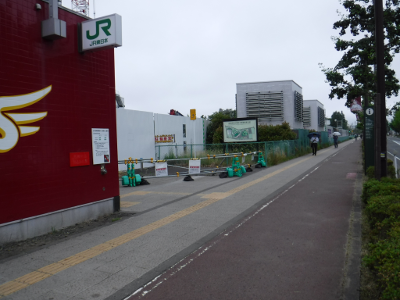 小雨が降るこの日,宮城野原駅前に違法駐輪された自転車はなかった。また,点字ブロックの利用を妨げるような障害物もなかった。