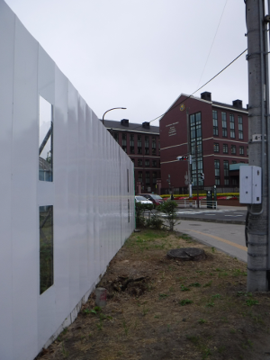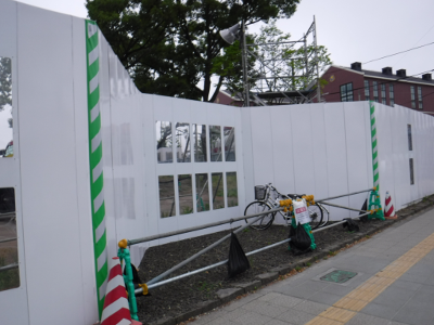 仙台医療センターの新築工事現場脇の旧ベンチの周り