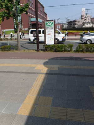 宮城野原駅前に仙台市委嘱の自転車誘導員が立つこの日,違法駐輪された自転車はなかった。また,点字ブロックの利用を妨げるような障害物もなかった。