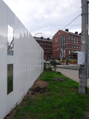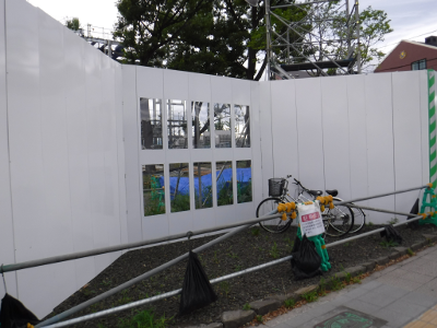 仙台医療センターの新築工事現場脇の旧ベンチの周り