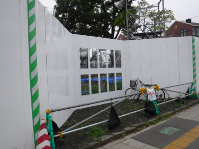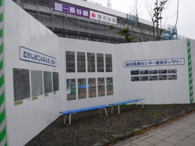 仙台医療センターの新築工事現場脇の旧ベンチの周り