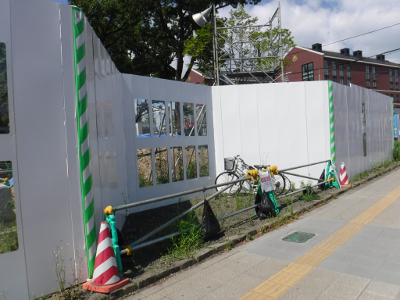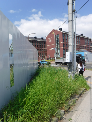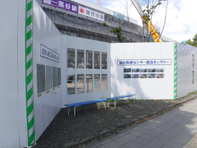 仙台医療センターの新築工事現場脇の旧ベンチの周り