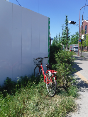 しかし,前日同様,交差点角の空き地に,1台の自転車が違法駐輪されていた。この位置に1台だけ違法駐輪されている分には,視覚障害者の点字ブロック使用にも,その他の交通にも支障はないが,この自転車の真似をして違法駐輪するものが増えると,様々な形で交通の邪魔となる可能性が高い。そうなる前に,迅速に対応することが必要不可欠である。