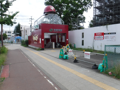 いつもより少し遅めの時間に宮城野原駅前に到着したこの日,駅前に違法駐輪された自転車はなかった。また,点字ブロックの利用を妨げるような障害物もなかった。