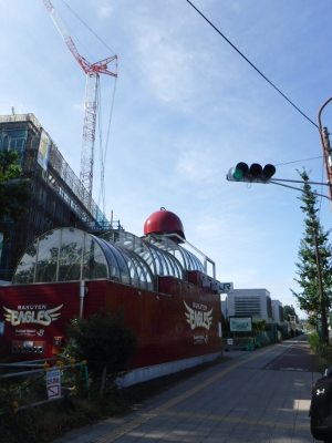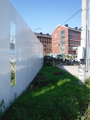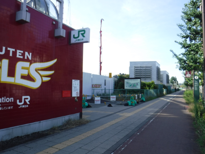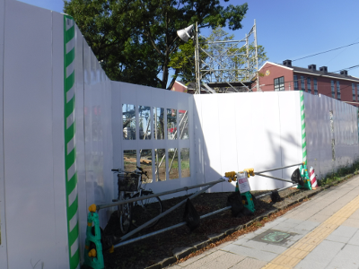 仙台医療センターの新築工事現場脇の旧ベンチの周り