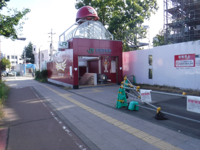晴上がったこの日,宮城野原駅前に違法駐輪された自転車はなかった。また,点字ブロックの利用を妨げるような障害物もなかった。