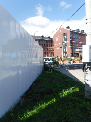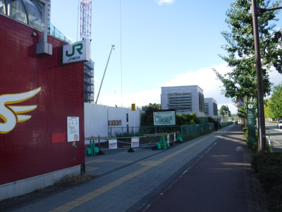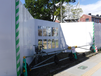仙台医療センターの新築工事現場脇の旧ベンチの周り