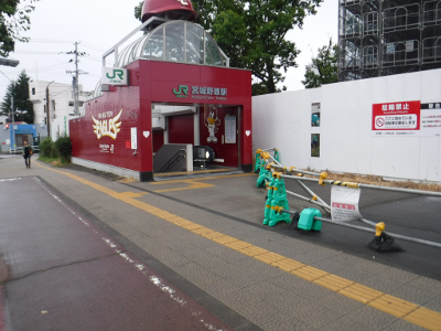 天気がぐずついたこの日,宮城野原駅前に違法駐輪された自転車はなかった。また,点字ブロックの利用を妨げるような障害物もなかった。