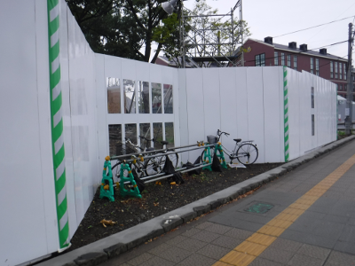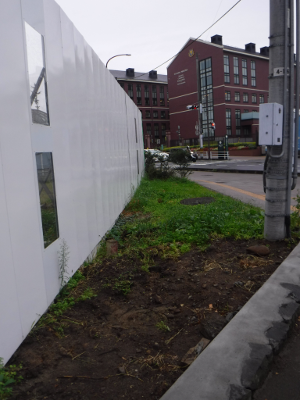 仙台医療センターの新築工事現場脇の旧ベンチの周り