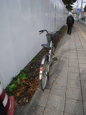 旨書かれた掲示がされていたことである。この掲示のため,この日は違法駐輪された自転車がなかったのかもしれない。なお,この掲示に対応して,放置された1台1台の自転車に貼られたと思われる掲示が,