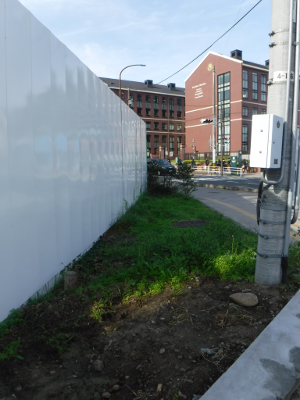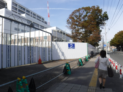 仙台医療センターの新築工事現場脇の旧ベンチの周り