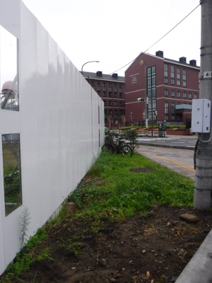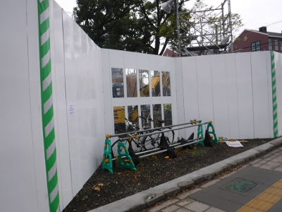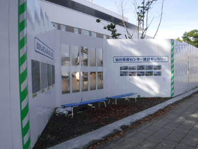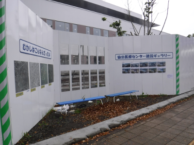 仙台医療センターの新築工事現場脇の旧ベンチの周り