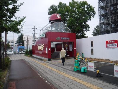 曇天のこの日,宮城野原駅前に違法駐輪された自転車はなかった。また,点字ブロックの利用を妨げるような障害物もなかった。