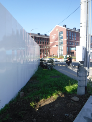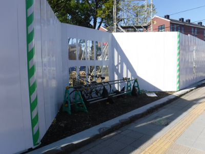 仙台医療センターの新築工事現場脇の旧ベンチの周り