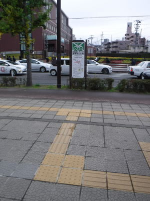 曇天のこの日,宮城野原駅前に違法駐輪された自転車はなかった。また,点字ブロックの利用に支障をきたすような妨害物もなかった。