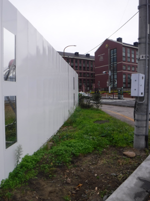 仙台医療センターの新築工事現場脇の旧ベンチの周り