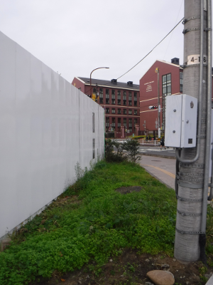 仙台医療センターの新築工事現場脇の旧ベンチの周り