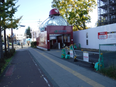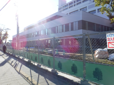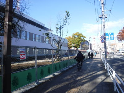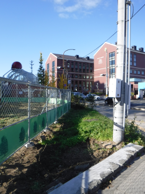 仙台医療センターの新築工事現場脇の旧ベンチの周り