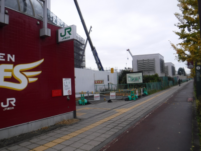 仙台医療センターの新築工事現場脇の旧ベンチの周りにも,バス停脇の休息場所の跡地周辺にも,違法駐輪された自転車はなかった。