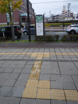また,現仙台医療センター側の駅舎前には,1台の自転車が違法駐輪されていた。逆側の歩道側からだと正確には判断できないが,この位置の違法駐輪は,視覚障害者の点字ブロック利用の支障となる恐れがある。こちらも,管理者には早急な対応をお願いしたい。