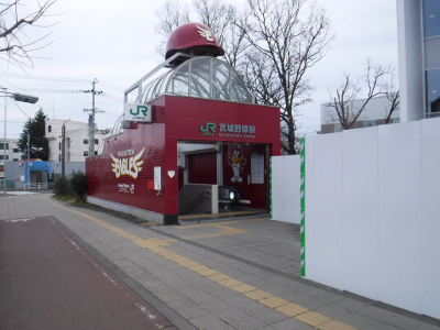 この日,仙台医療センター新築工事現場側の宮城野原駅前に違法駐輪された自転車はなかった。また,点字ブロックの利用に支障をきたすような妨害物もなかった。
