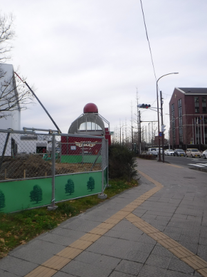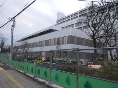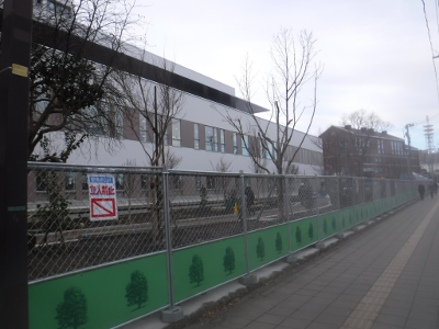仙台医療センターの新築工事現場脇の旧ベンチの周り
