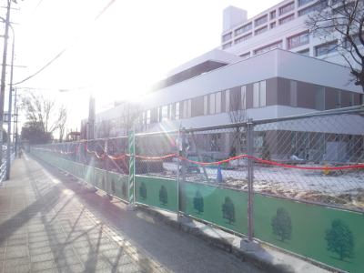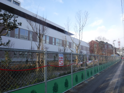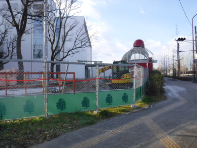 仙台医療センターの新築工事現場脇の旧ベンチの周り