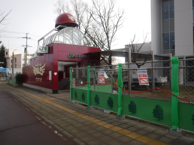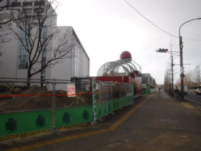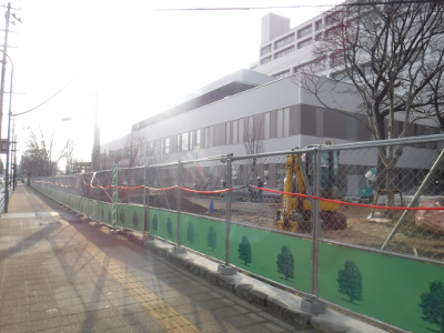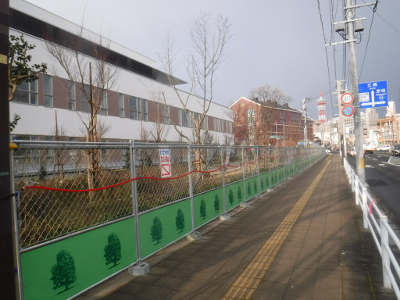 仙台医療センターの新築工事現場脇の旧ベンチの周り