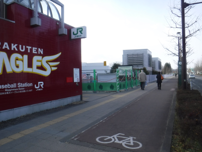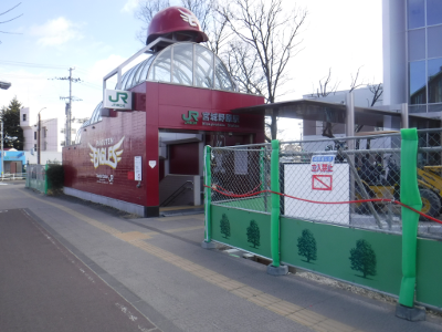 この日,仙台医療センター新築工事現場側の宮城野原駅前に違法駐輪された自転車はなかった。また,点字ブロックの利用に支障をきたすような妨害物もなかった。