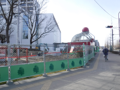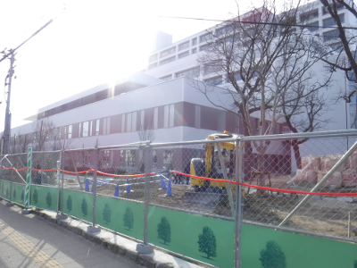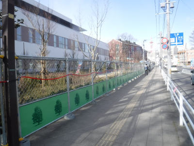 仙台医療センターの新築工事現場脇の旧ベンチの周り