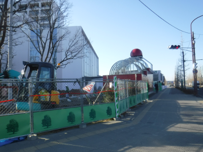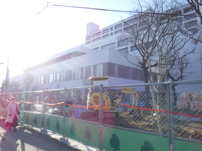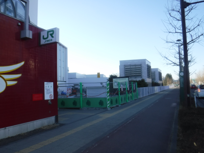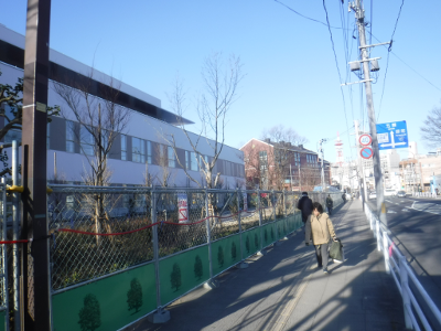 仙台医療センターの新築工事現場脇の旧ベンチの周り